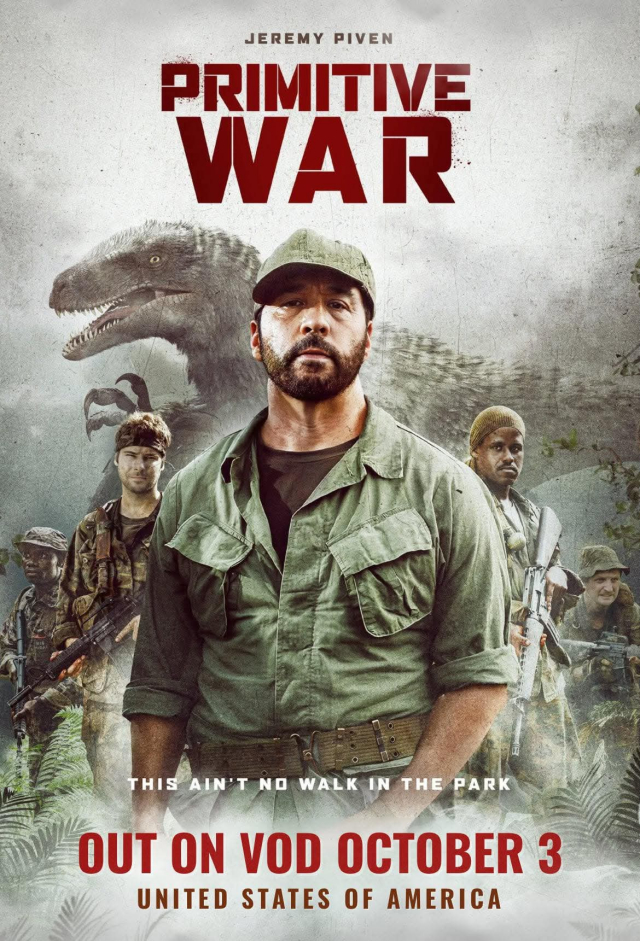 Primitive War – the epic Dinosaur movie that rivaled Jurassic World Rebirth this past summer is finally coming to Video On Demand! This cinematic prehistoric thrill ride takes place in 1968, at the height of the Vietnam War and yep, Dinosaurs are thrown into the mix. The plot might sound outlandish but the film has taken the internet by storm and continues to rally fans all over the world. On Rotten Tomatoes, it actually outranks several Jurassic Park films! Packed with tons of excitement and surprisingly good visual effects, Primitive War is a worthy addition to the world of Dinosaur movies and it can be yours to own on VOD starting October 3rd if you reside in the United States.