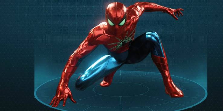 This suit is another one I have mixed feelings about. It looks sleek and shiny, being essentially an armored version of the classic suit. Its Suit Power is broken and helps a lot. However, I don't like the green tint and shape of the spider logo on the chest. It also brings back bad memories of ANAD Marvel, which made me hate Spider-Man until he joined the MCU.